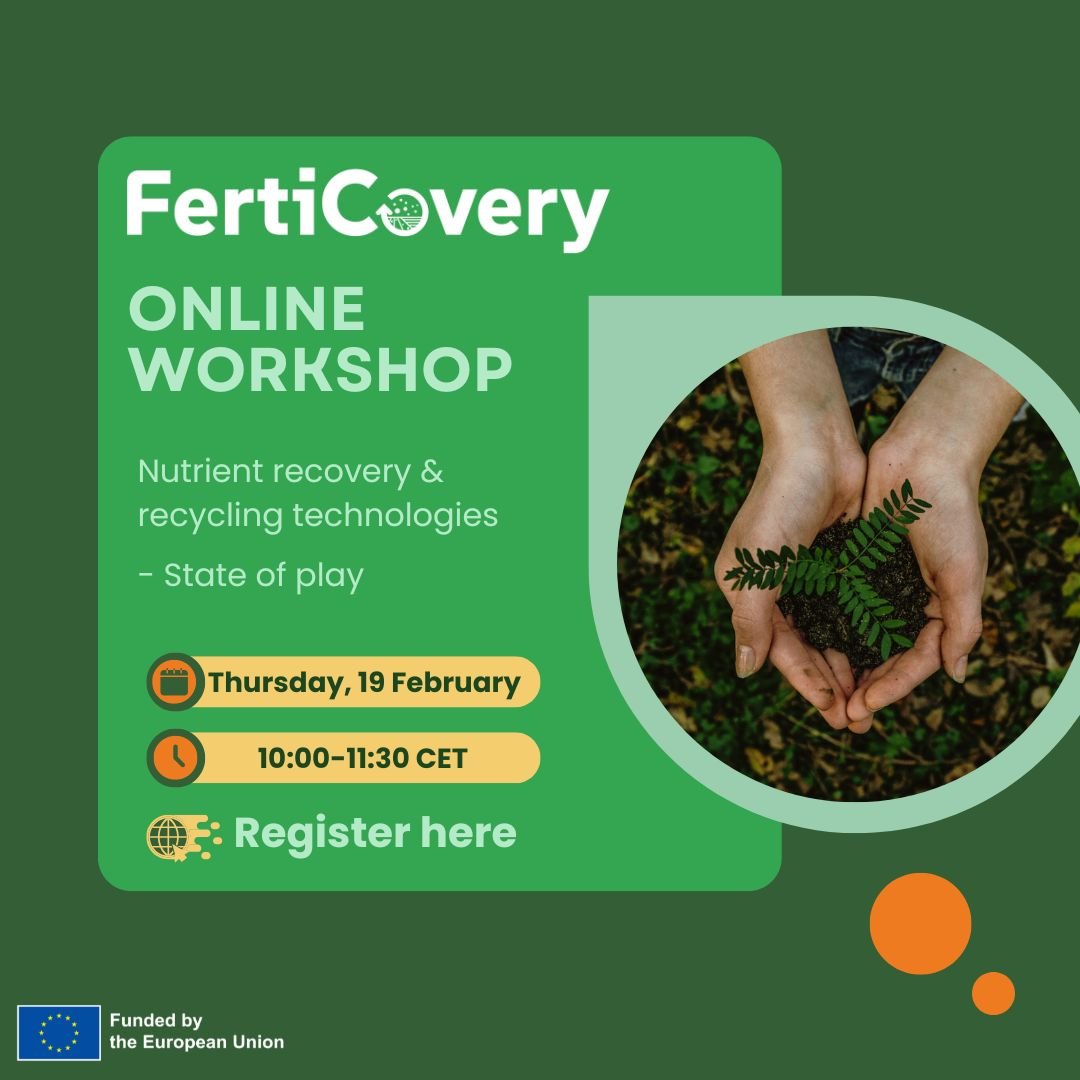Date: Thursday, 19 February 2026 Time: 10:00–11:30 CET Format: Online via Microsoft Teams – register here FertiCovery advances nutrient recovery and the production of bio-based fertilisers from secondary raw